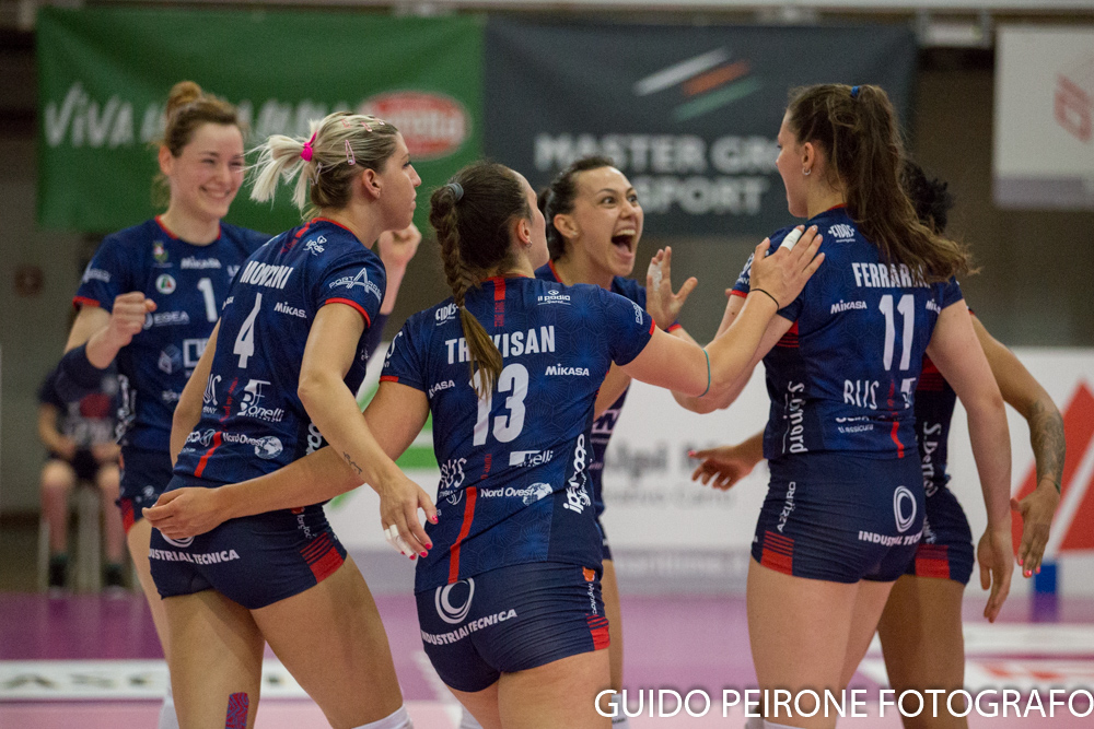 Nel primo set le due formazioni si inseguono (18-18). L’Lpm Bam Mondovì trova il break (22-20), ma Macerata trova la parità (22-22). Le pumine ruggiscono e mettono in cantiere il primo set (25-23).